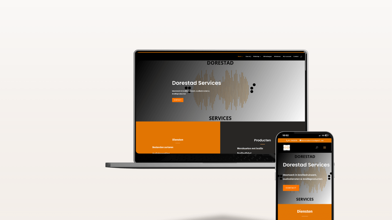 Dorestad Services werd getroffen door een hack, waardoor de oude website offline raakte. Ik kreeg de opdracht om snel een volledig nieuwe website en webshop te ontwikkelen, die zowel het uitgebreide dienstaanbod als een aantal fysieke producten overzichtelijk presenteert.